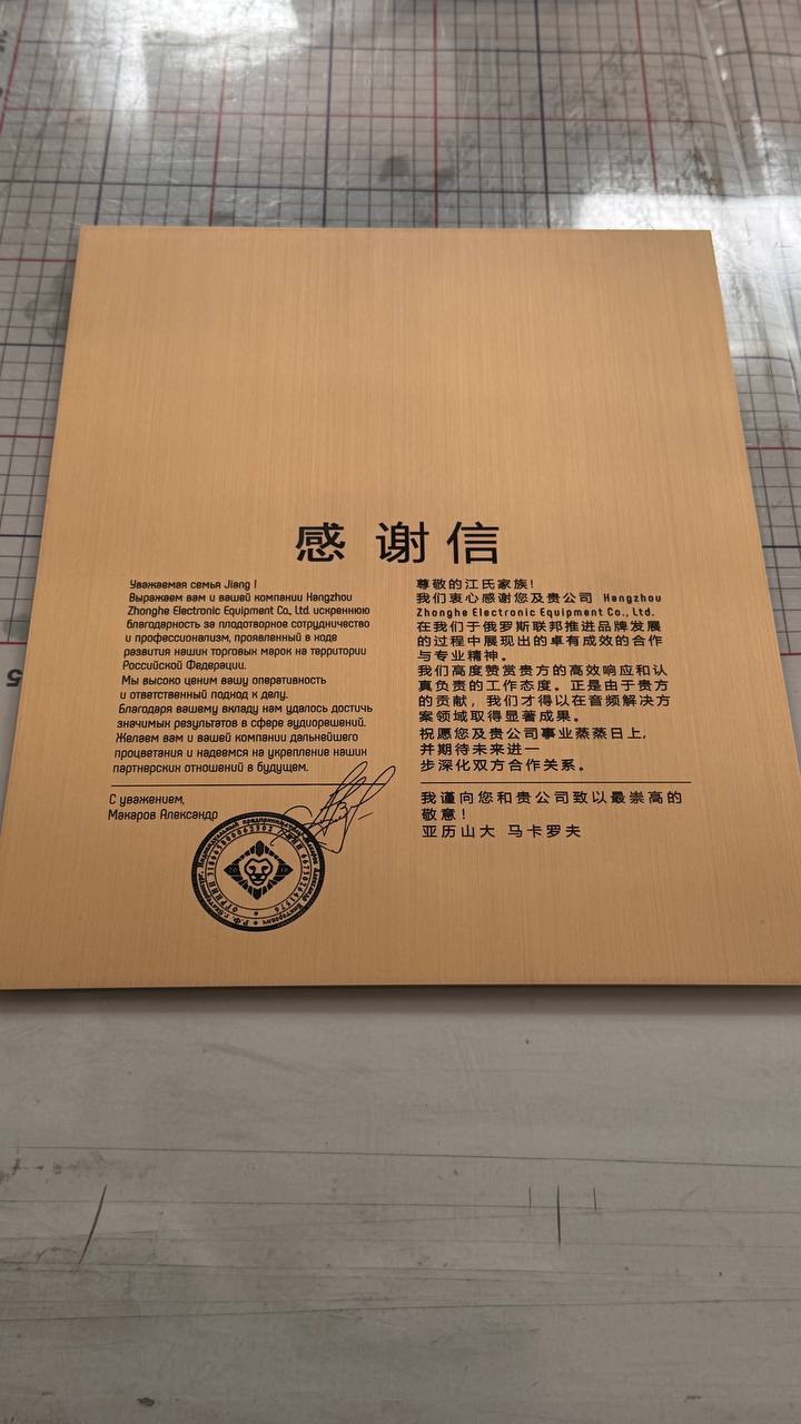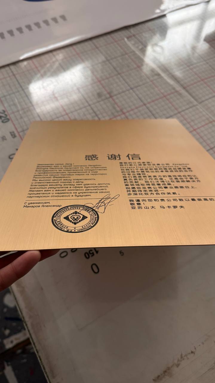 Табличка выполненная из латуни толщиной 1мм Гравировка на лазерном станке, покрытая лаком Мы можем изготовить табличку из латуни и в конце покрыть ее лаком для сохранения внешнего вида Для уточнения информации обратитесь к менеджеру