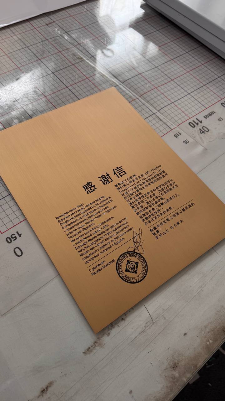 Табличка из латуни с гравировкой и лаковым покрытием по вашему запросу